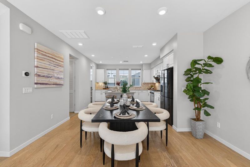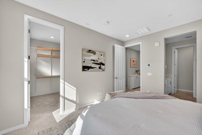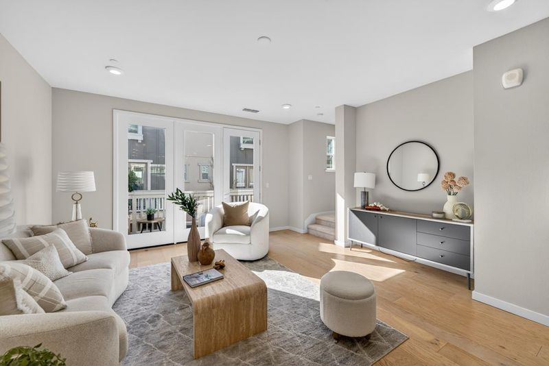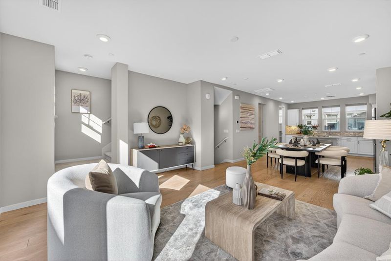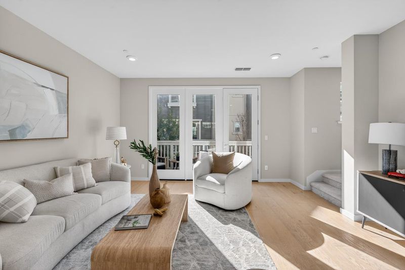 Welcome to this beautiful townhome in the sought-after the Vale community of Sunnyvale, featuring 3 beds and 3.5 baths. Offers serene surroundings with abundant natural light throughout.with a ground-level suite offering large windows, a walk-in closet, and a bath with stall shower-ideal for extended family. The second level showcases an open floor plan with a spacious living room, dining area, and kitchen, enhanced by abundant natural light from large windows. Indulge in outdoor living on a private balcony, as abundant natural light floods the interior, creating an inviting ambiance. The modern kitchen features a large island quartz countertops, stylish tile backsplash, stainless steel appliances, and ample white cabinetry. A laundry room and half bath on this level add convenience. The third level with new carpet throughout hosts the two en suite with high ceilings, bright windows, and an Elfa walk-in closet. The en-suite bath includes a double vanity with quartz countertops. Additional highlights include an attached two-car garage. The Vale community offers parks, playgrounds, and a clubhouse. Conveniently located near major tech companies, restaurants, shopping, groceries, and with easy access to Highways 101, 237, and Lawrence Exwy. Do not miss this great opportunity!