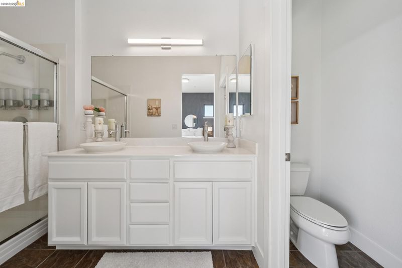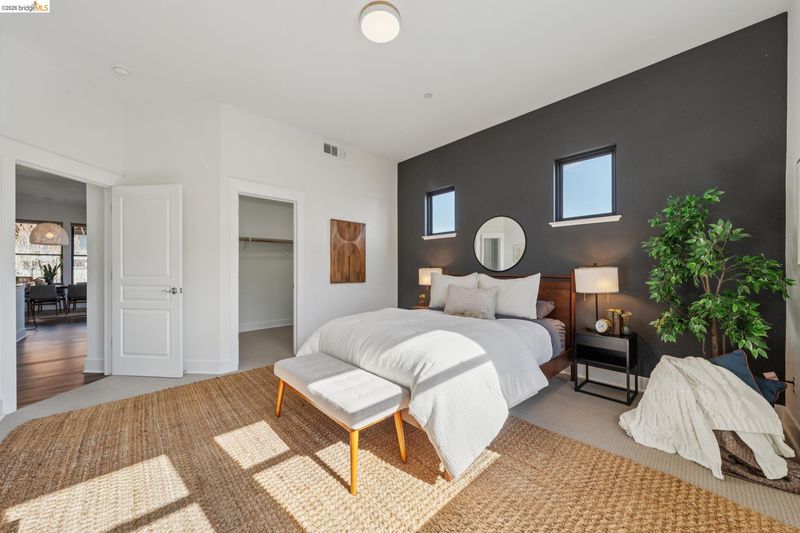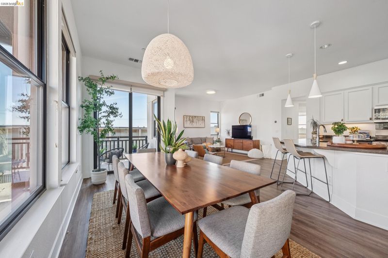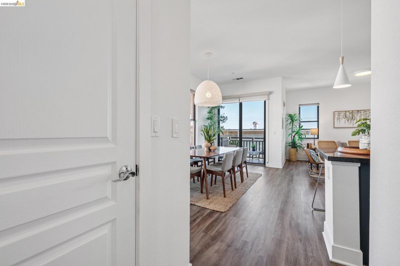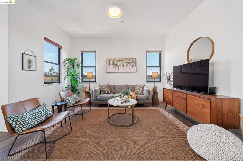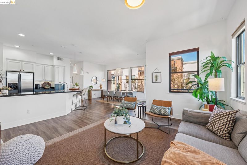 Enjoy modern townhouse style living in the Artisan Walk community! Situated in a quiet garden location in this well-run complex, this sun-drenched unit perfectly blends contemporary design with effortless functionality. The open-concept living areas feature expansive windows that flood the space with natural light with views of the Oakland city skyline, creating a bright and airy atmosphere. At the heart of the home, the updated kitchen shines with designer colors, stainless steel appliances, and breakfast bar seating, flowing seamlessly into the dining area. From here, enjoy a smooth transition to a spacious balcony—perfect for morning coffee or evening relaxation. This residence offers two spacious bedrooms and two full bathrooms, including a primary suite complete with dual sinks and a generous walk-in closet. The home includes a Nest thermostat, central heat and AC, and a compliant sewer lateral. Exceptional utility is found in the large tandem two-car garage with interior access and additional storage rooms. Ideally located with a 93 Walk Score, this move-in-ready gem is close to the Emeryville Greenway and numerous favorite local amenities and eateries. With easy access to transportation, this home represents the best of East Bay living.