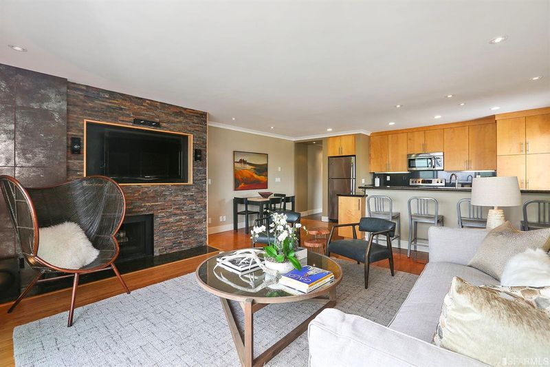 Sparkling unobstructed and peaceful views from your private balcony overlooking Eureka Valley, downtown and the bay. Tastefully remodeled top floor condo. Livingroom features a woodburning fireplace and patio glass sliding doors overlooking the balcony. Primary bedroom with ensuite bath. Second bedroom and second bath off the hall. Eating at the kitchen bar or dining table. Carpet in both bedrooms, bamboo and slate floors. Water and garbage included in HOA dues. Shared small gym, social room and laundry facilities. Deeded garage space and private storage space included.