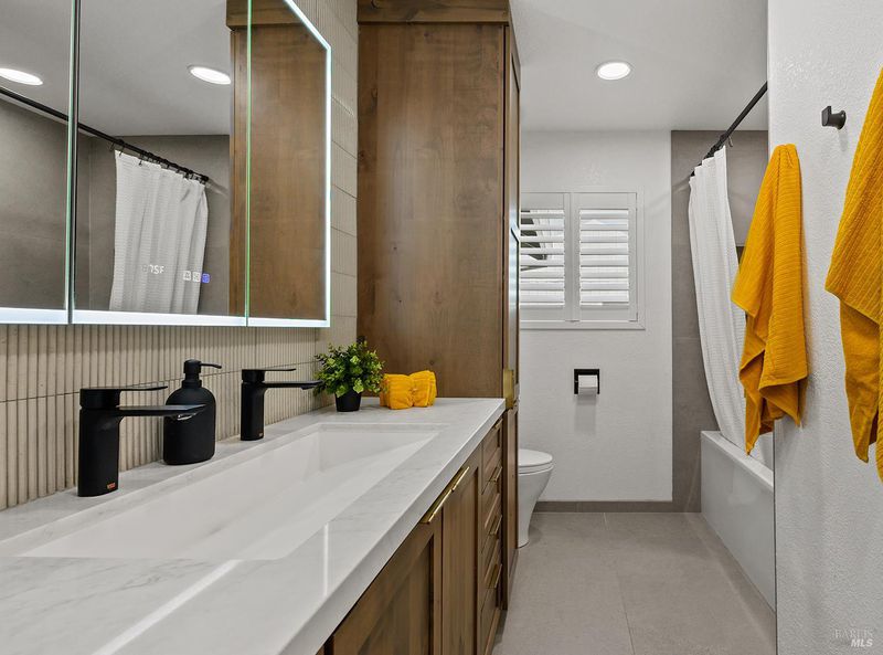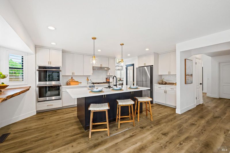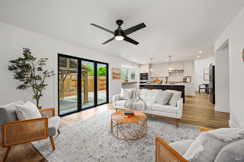 This home offers more of what actually matters: space, privacy, and no Mello Roos. Excellent location on a cul-de-sac, this beautifully remodeled five-bedroom, three-bathroom home stands out with a more functional floor plan and a larger, fully landscaped yard than many of the newer homes nearby. Step inside to a bright, open layout with formal living and dining areas that flow effortlessly into a warm and inviting family room with a fireplace. The remodeled kitchen is both stylish and practical, featuring high-end appliances, custom countertops, a live-edge wood bar/buffet, a gas range, and a custom-built pantry. The real difference is how this home lives. Accordion doors open wide to create a true indoor-outdoor connection, leading to a spacious backyard designed for relaxing and entertaining. With new pavers, a custom patio, a pavilion-style shade structure, and a brand-new hot tub, this is the kind of outdoor space that newer construction rarely offers. Upstairs, the primary suite provides a comfortable retreat with a large walk-in closet and a beautifully updated bathroom featuring marble floors, a granite vanity, a soaking tub, and a separate shower. Additional upgrades include solar for energy efficiency, an oversized HVAC system, an on-demand water heater, upgraded plumbing, new fixtures, fresh paint, and an updated spiral staircase. The three-car garage offers excellent storage, with a rear bay opening to the backyard for added flexibility. Located close to a community pool, parks, tennis courts, and highly regarded local schools, this home offers both convenience and a strong neighborhood feel. For buyers comparing options, this home delivers more space, more comfort, and more long-term value: without the added costs of new construction.