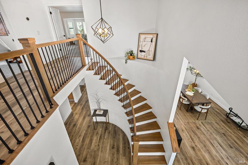 This home offers space, privacy, and no Mello Roos. Tucked away on a private cul-de-sac, this beautifully remodeled five-bedroom, three-bathroom home features a more functional floor plan and a larger, fully landscaped yard than many nearby newer homes. Inside, enjoy a bright, open layout with formal living and dining areas, a welcoming family room with fireplace, and a remodeled kitchen with high end appliances, gas range, custom countertops, live edge wood bar, and custom pantry. Accordion doors create seamless indoor outdoor living, opening to a spacious backyard with new pavers, custom patio, pavilion style shade structure, and a brand new hot tub. Upstairs, the primary suite offers a large walk in closet and an updated bathroom with marble floors, granite vanity, soaking tub, and separate shower. Additional features include solar, oversized HVAC, on demand water heater, upgraded plumbing, new fixtures, fresh paint, and an updated spiral staircase. Three car garage with rear yard access adds flexibility. Conveniently located near a community pool, parks, tennis courts, and highly regarded local schools, this home is a compelling alternative to new construction
