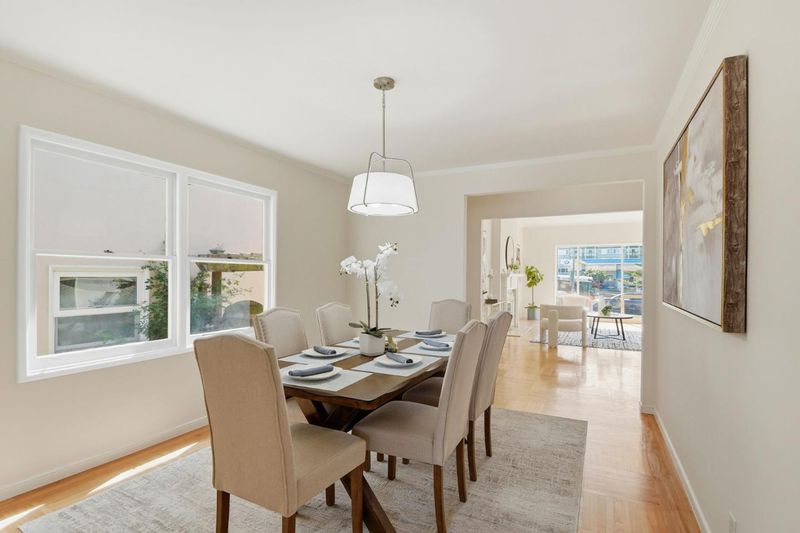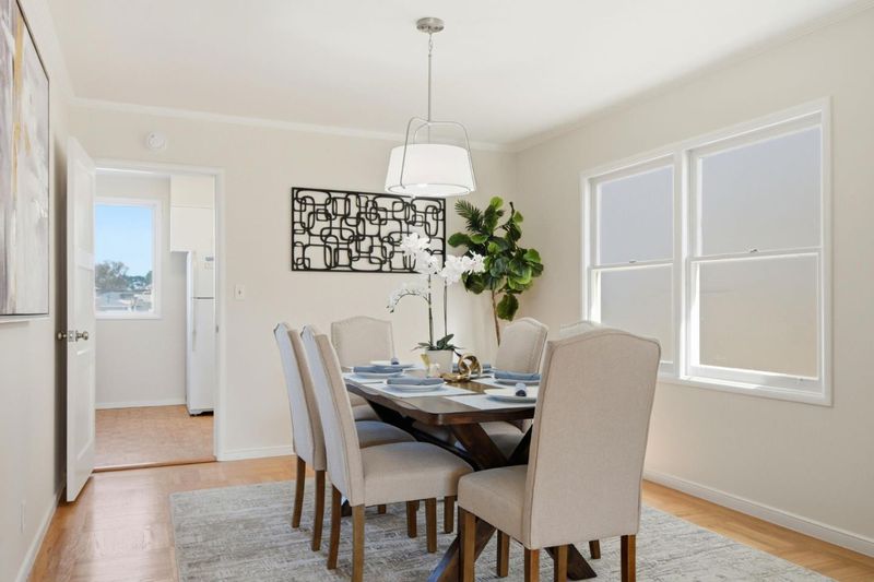 Charming, beautifully maintained home in the highly desirable Westlake neighborhood, freshly painted inside and partially outside. Flooded with natural light, the eat-in kitchen has gorgeous parquet hardwood floors and double-pane windows. Gleaming hardwood plank flooring flows throughout. New, beautiful brushed nickel ceiling lights throughout. Spacious formal dining room. The expansive living room has a cozy fireplace. The generous bedroom features a large closet, double-pane windows, and views of the lovely, fenced backyard and inviting patio. The primary bedroom features double-pane windows plus a convenient walk-in closet that connects directly to the beautifully remodeled bathroom. The bathroom is bathed in sunlight from high windows above the bathtub and updated with modern brushed nickel lighting, an elegant wood sink cabinet, a vanity table, and a new toilet. Step outside to the private backyard oasis: A new wood fence thoughtfully separates the patio from the lush garden area. The yard is fully enclosed by sturdy wood fencing for privacy and security. Oversized tandem garage offers plenty of storage or parking. Prime location, easy access to public transportation, shops, restaurants, and just a quick 15-minute drive to the beauty and excitement of San Francisco.