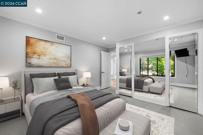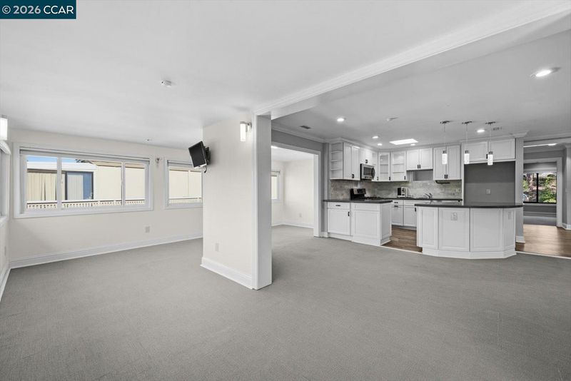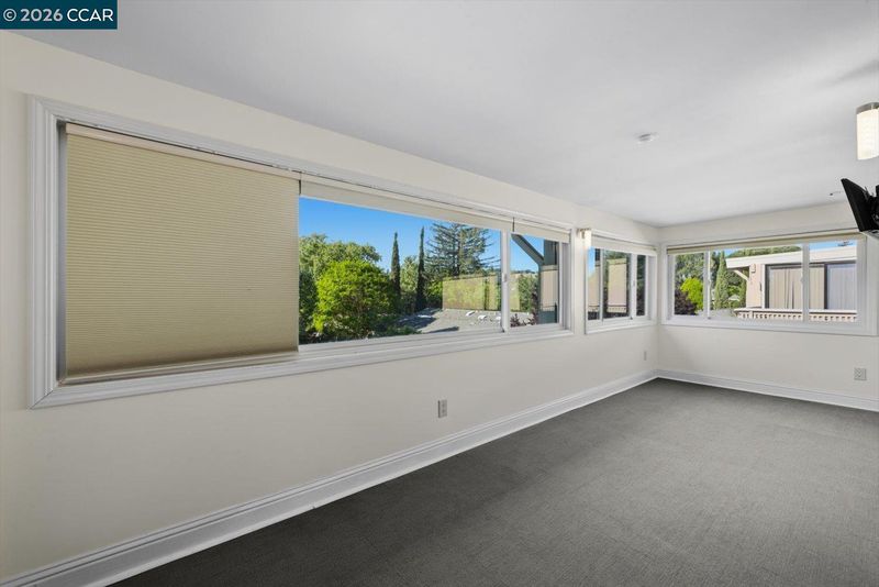 Welcome to 2741 Golden Rain Rd #7, a spacious upper-level Sequoia Wrap 2BD/2BA co-op offering approx. 1,466 sq ft in the sought-after 55+ Rossmoor community. The open living and dining area is filled with natural light and features a fireplace and built-in entertainment center. A covered balcony spans the home, providing a peaceful outlook and space for outdoor seating or dining. The updated kitchen includes modern appliances, ample cabinetry, and a large breakfast bar/island. A versatile bonus room offers flexibility for an office, reading, or exercise space. The primary suite features an expansive closet and ensuite bath with dual vanities, bidet, and walk-in shower with seating. The second bedroom includes a Murphy bed for added flexibility. Nearby is a bath with large vanity and walk-in shower. Additional features include dual-pane windows, skylights, generous storage, and a private parking space and cabinet ideal for golf clubs or seasonal items. There’s also a community gathering space nearby. Rossmoor offers golf, fitness, pools, tennis, trails, clubs, and more. Buyer must qualify. Monthly HOA dues. Minutes to downtown Walnut Creek, shopping, dining, and freeway access.
