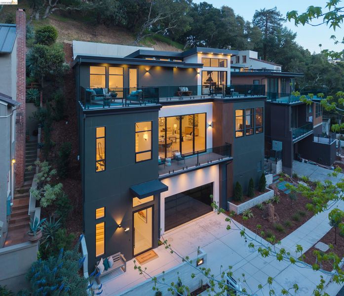 A bold expression of modern luxury in Oakland’s coveted Crocker Highlands enclave, this newly constructed architectural residence makes an unforgettable first impression. Defined by dramatic scale, soaring ceilings, and a gallery-like sense of openness, the home is a masterclass in contemporary design and elevated living. Expansive interiors unfold with striking volume and light, where walls of glass and refined finishes create an atmosphere that is both sophisticated and inviting. The main living spaces flow seamlessly, designed for grand entertaining yet equally suited to intimate everyday moments. At the heart of the home, a sleek chef's kitchen anchors the space with effortless style while the walk-in pantry adds to the functionality. Offering 3+ bedrooms and 2.5 baths, the private quarters provide a serene retreat, thoughtfully designed for comfort and flexibility. Set amid the tree-lined beauty of one of Oakland’s most desirable neighborhoods, and proximity to the best of the East Bay.
