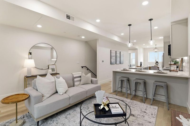 Open this weekend -- Gorgeous new construction in Campbell, near the Pruneyard and downtown with easy access to shopping, dining, and amenities. *Generous builder incentives currently offered!* Highly regarded Cambrian schools. Bright interior with large windows, southern exposure, and three balconies. Main level features open living area. Kitchen includes polished porcelain countertops, peninsula and island, and custom cabinetry with ample storage. Brand-new Samsung and LG appliances: French door refrigerator, induction cooktop, oven, microwave, and dishwasher. Opens to living and dining areas for functional flow. Modern finishes throughout. Two bedrooms on the third level, each with its own bathroom featuring tiled finishes and quartz countertops. Washer/dryer on this level. Attached tandem 2-car garage with Level 2 EV hookup, storage, and epoxy flooring. Modern and energy-efficient features include Ring doorbell, mini-split HVAC, dual pane windows and solar options. Near parks, trails, restaurants, shopping, and local events, with access to major Silicon Valley employers and San Jose International Airport. Some photos are from model unit with similar floor plan; finishes may vary. Don't miss this exceptional opportunity to own brand new in lovely Campbell.
