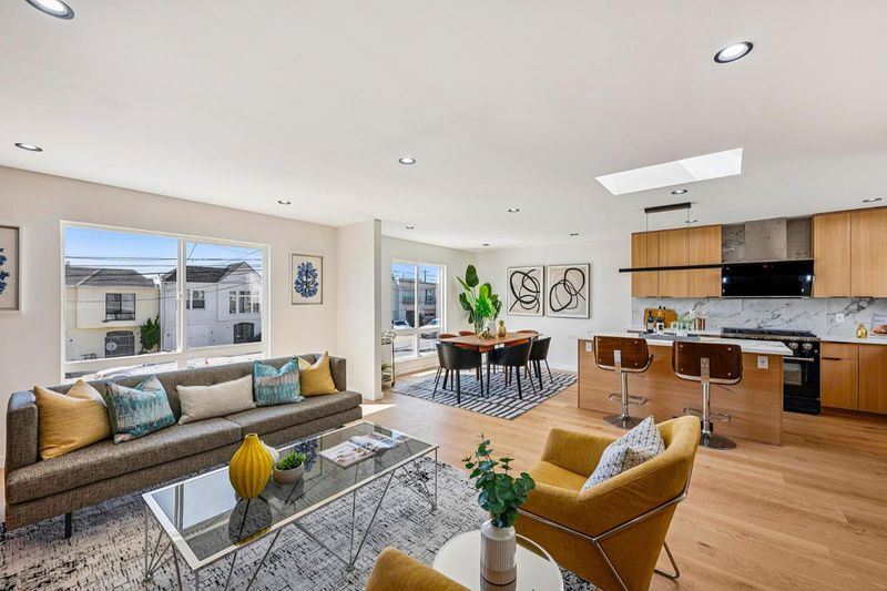 Sophisticated & Contemporary Coastal Living! Fully renovated down to the studs, this stunning residence in the highly sought-after Outer neighborhood offers the perfect blend of modern design & effortless beachside living, just moments from Ocean Beach, ideal for surf enthusiasts and outdoor lovers alike. Spanning 1,910 SQFT of beautifully reimagined living space on a 2,996 SQFT lot, this 3BD/3BA home showcases exceptional craftsmanship across 2 levels, enhanced by 3 skylights that flood the interiors with natural light. Thoughtfully upgraded with all-new electrical and plumbing, completed with permits, including the lower level, the home features a bright, open-concept floor plan, elegant white oak hardwood flooring, & LED-lit staircase. Upper level presents an expansive living/dining area, sleek chefs kitchen with bar island, includes 2BD/2BA/1 primary suite with direct access to spacious deck. Lower level provides a huge family room with a wet bar, 1BD/1BA including 2nd suite. Washer/dryer hookups ready, tankless water heater, EV charging outlet, 1 car garage, driveway parking, & low-maintenance backyard. Near market, restaurants, schools, east access to Great Highway Trail, Golden Gate Park, and Ocean Beach. A true coastal modern gem, don't miss this exceptional opportunity!