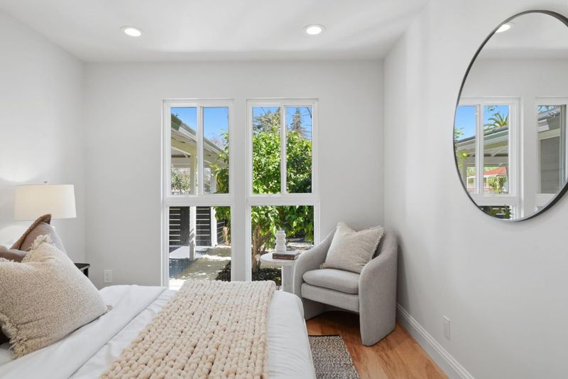 CUL-DE-SAC RETREAT WITH POOL, CLOSE TO EVERYTHING | Showcasing meticulously redesigned spaces, this residence on a serene Cumberland South cul-de-sac embraces intentional modern living. The sun-drenched floorplan optimizes versatility, ideal for multigenerational families, while multiple outdoor retreats provide ample room to play, relax, and entertain. Floor-length windows grace sizable living and dining rooms, anchored by a glamorous kitchen with waterfall island, custom cabinetry, and premier appliances. A primary suite is found on each level, including an upstairs sanctuary with home office and brilliant spa bath. Secluded outdoor spaces offer a private courtyard, freeform pool with paver terrace, and edible garden with mature fruit trees. Other highlights include an upper family room, second office/fifth bedroom and garage with wiring for two EV chargers. The full list of details is astounding! Stroll to Cumberland Elementary and pickleball and tennis at Las Palmas Park. Moments from downtown Sunnyvale, Cityline, tech centers, and prized schools like Sunnyvale Middle and Homestead High (buyer to verify). Enjoy an exuberant Silicon Valley lifestyle with this one-of-a-kind residence!