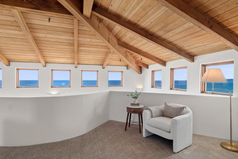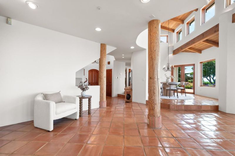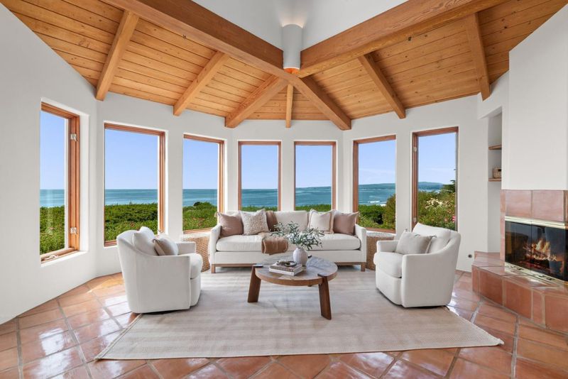 Set above the sparkling coastline near Manresa Beach, this private Mediterranean inspired retreat offers an elevated coastal lifestyle defined by serenity, light, and breathtaking ocean views. Situated on over an acre of beautifully landscaped grounds,the home feels like a peaceful sanctuary where nature and everyday living come together effortlessly. Expansive outdoor spaces and inviting terraces create seamless indoor, outdoor living, perfect for morning coffee or sunset gatherings overlooking the water. Inside, soaring open beam ceilings, warm wood accents, and rich Saltillo tile floors create a refined, yet welcoming atmosphere filled with natural light. Oversized windows frame panoramic ocean views, while the open concept layout flows easily for both entertaining and daily living. The bedrooms offer restful retreats, many with coastal vistas, and a strong connection to the surrounding landscape. A detached ocean view studio provides a light filled space ideal for an artist or musician, while a generous vegetable garden supports an organic, farm to table lifestyle. Surrounded by mature landscaping for privacy and tranquility, this exceptional property captures the essence of coastal California living.