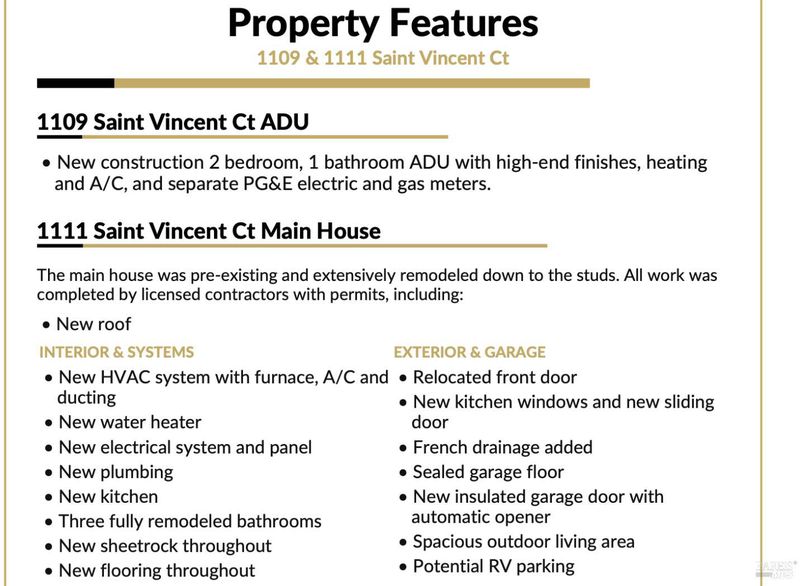 Two homes on one expansive lot! Beautifully updated 5BD/3BA, 2367sf main residence (with two ground floor bedrooms) plus a detached, newly constructed and fully permitted 2BD/1BA, 750sf ADU create a versatile and move-in ready property. The main home features fresh interior and exterior paint, a remodeled kitchen, updated bathrooms, updated electrical, and roof, providing both style and peace of mind. The detached ADU offers a flexible floor plan with two bedrooms and a full bath, ideal for long-term multi-generational living, guest accommodations, rental income potential, or a home office/studio. Separate address and utility meters(gas and electric) and space for potential RV parking add additional flexibility. Conveniently located near schools, parks, and shopping, this property presents a rare opportunity for additional living space and income potential in one complete package.